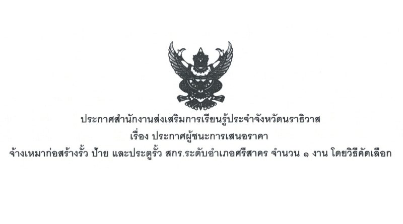 ประกาศสำนักงานส่งเสริมการเรียนรู้ประจำจังหวัดนราธิวาส