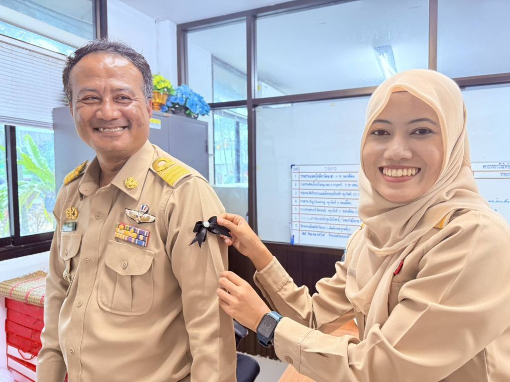 มอบหมายให้ บุคลากรครู ศกร.ระดับตำบลตันหยงมัส แจกจ่ายริบบิ้น